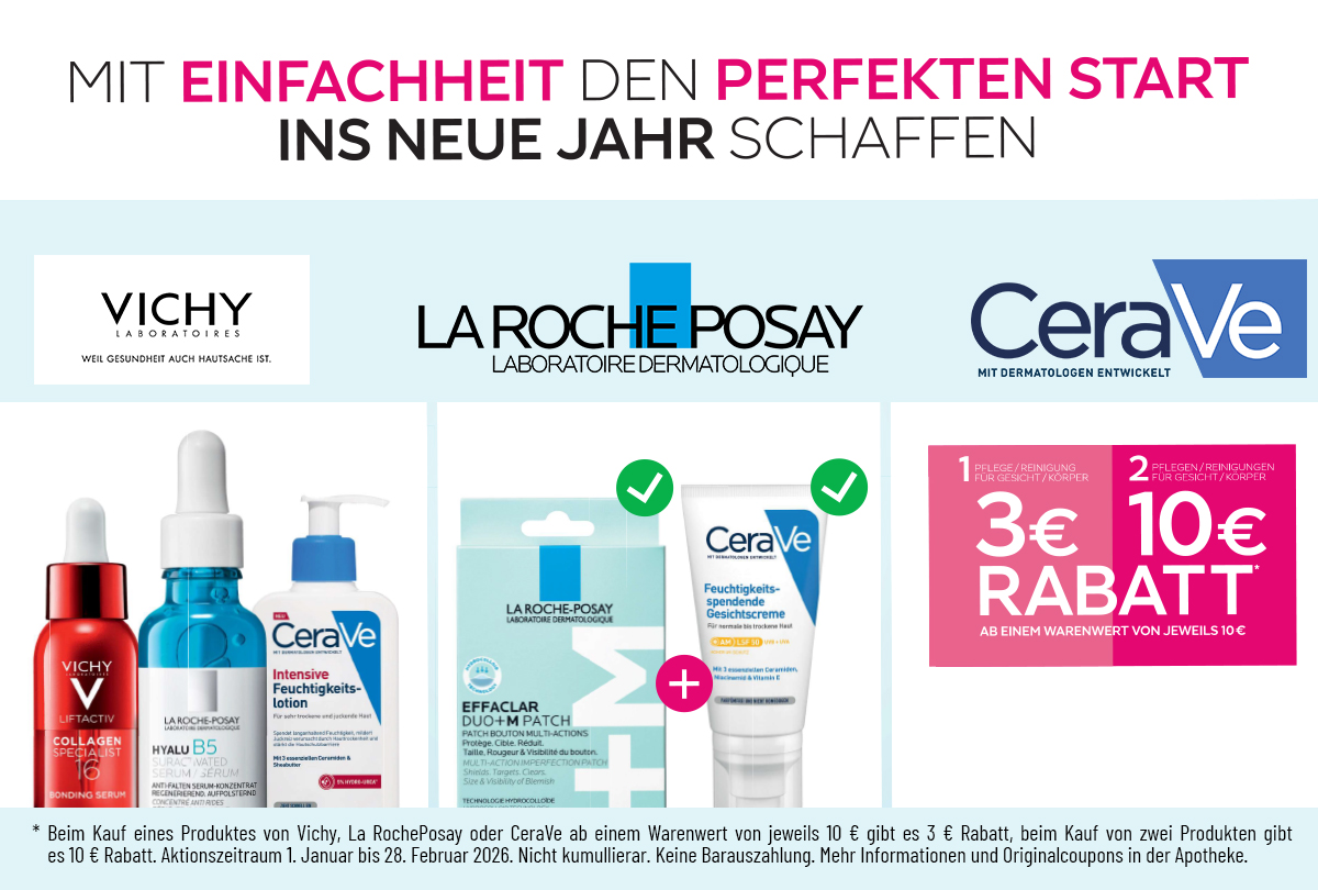 Eucerin, Allpresan, Celyoung, Optolind, Frei Öl, Vichy, Dermasence,  Caudalie, Dr. Theis, Linola, Benpanthol, Allergika, Uriage, Ducray, La Mer, Lavera, Weleda, Dr. Hauschka, Allgäuer Latschenkiefer, Gehwohl, Rausch, Efasit, Galderma, Dr. Grandel, La Roche-Posay, Bioderma, Sebamed, CeraVe